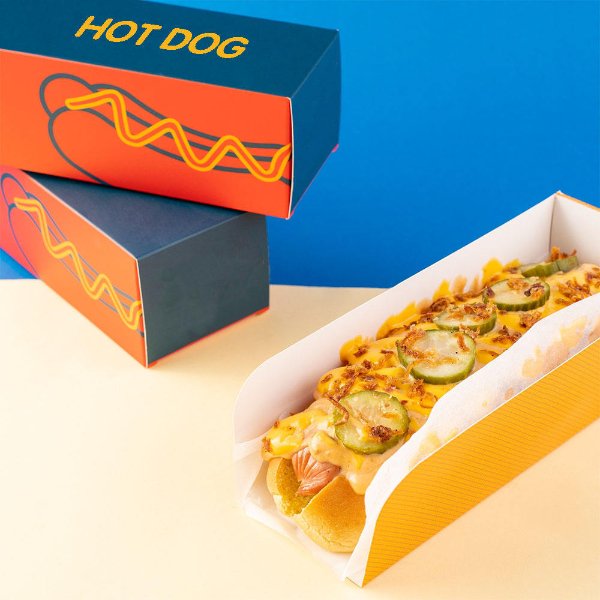 Custom Long Hot Dog Corn Dog Take Out Drawer Packaging to Go Sandwich Foldable Box With Lid