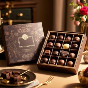 Custom Luxury Brown Candy Chocolate Packaging Safe for Wedding Food Rigid Lid Paperboard Gift Box with Stamping Food Safe