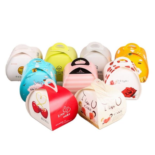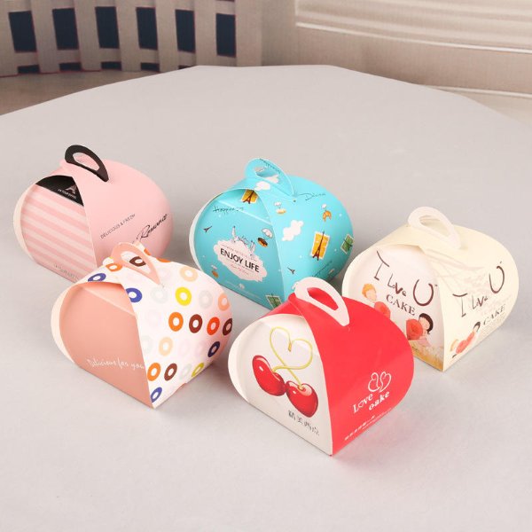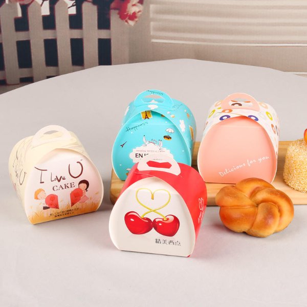 Custom-made Bakery Packaging Portable Pastry Mousse Triangle Mini Cake Box with Handle