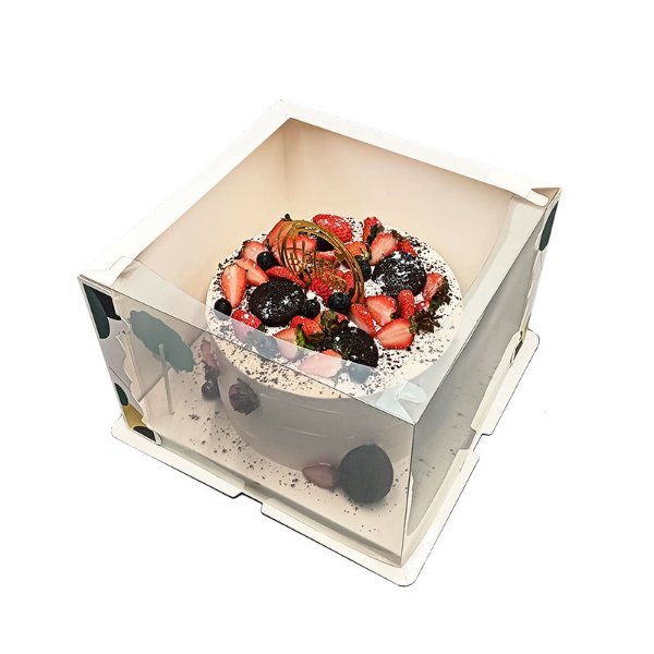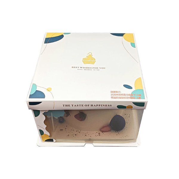 Custom Recyclable Cardboard Paper Food Packaging square Luxury Birthday Cake Box with clear Transparent Window