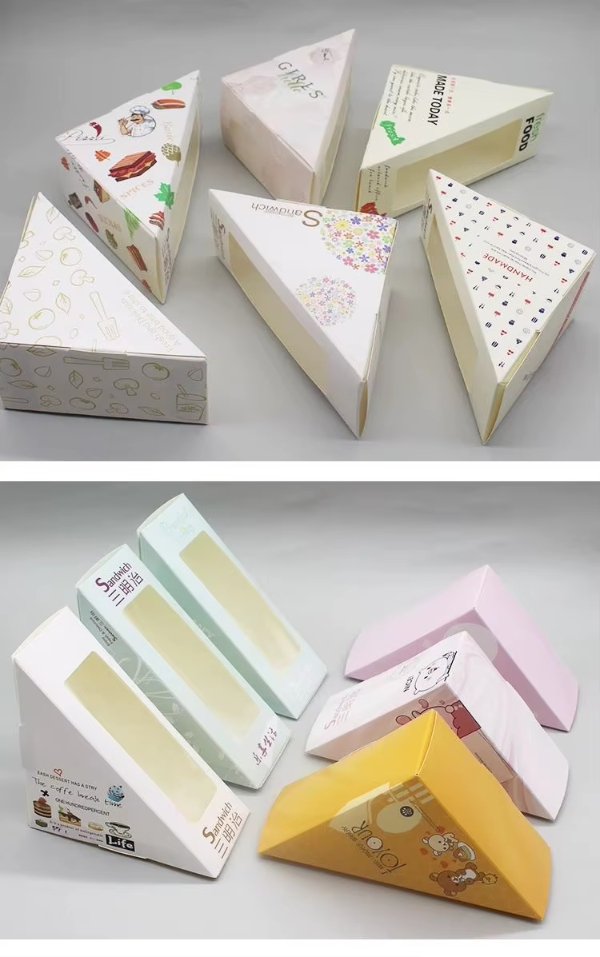 Customize Disposable Sandwich Box with Clear Window Takeaway Food Packaging Box for Cake Bread