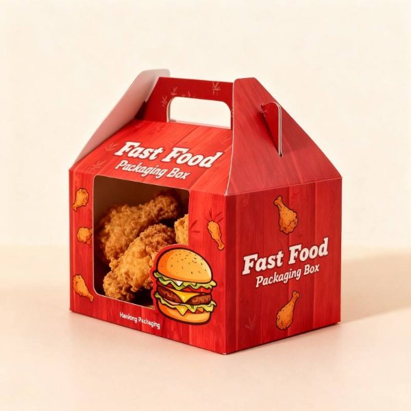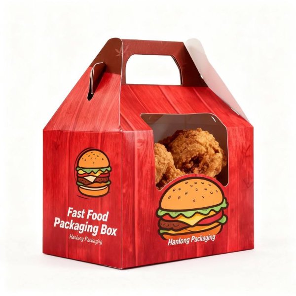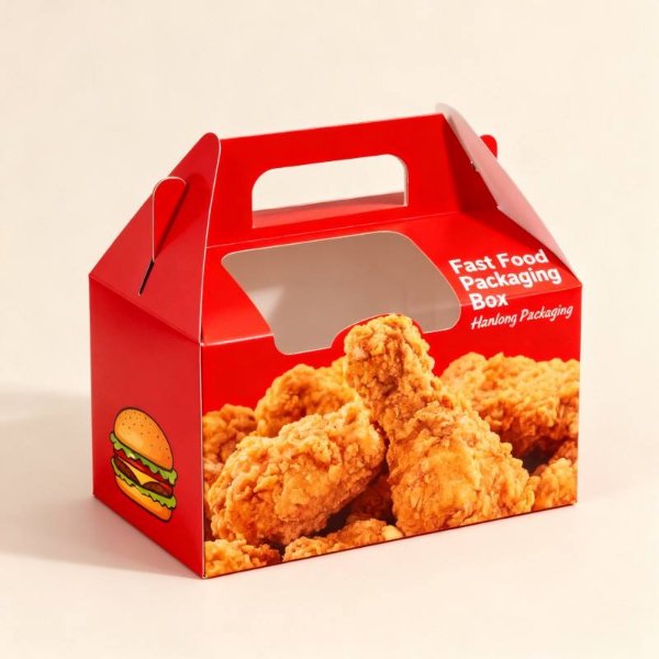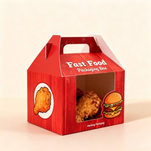 Customized Fresh Fried Chicken Packaging Box Biodegradable Red Fast Food Delivery Box Ventilated Window Potato Stick Food Box