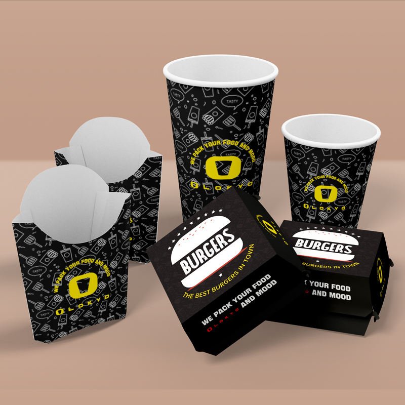 Food Grade Custom logo Burger Fast Food Box Take Away French Fries Packaging Paper Box