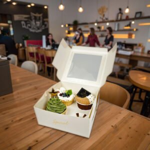 Hot Selling Custom Food Grade Paper Boxes with Window and Insert for CupCake Tart Pastry Packaging