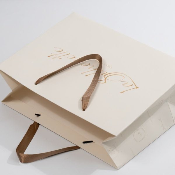 Product Name Luxury Ivory Board Shopping Paper Bag with Ribbon Handle Item Eco Paper Packaging Shopping Bag