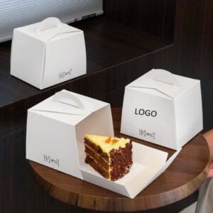 New Custom logo Birthday Cake Box Packaging Biodegradable Food Grade Sweet Ivory Cardboard Cake Boxes with Handle