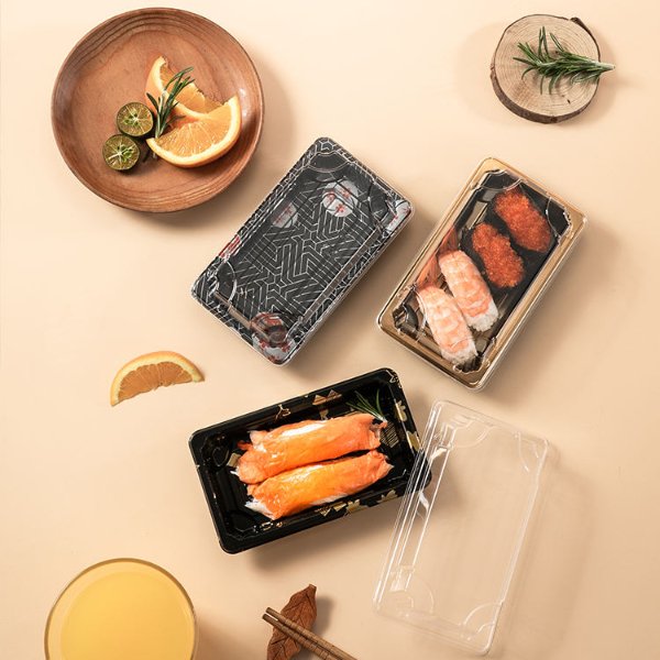 Wholesale Disposable Tableware Gold Meat Dessert Fruit Seafood Salmon Sashimi Sushi Trays Sushi Box